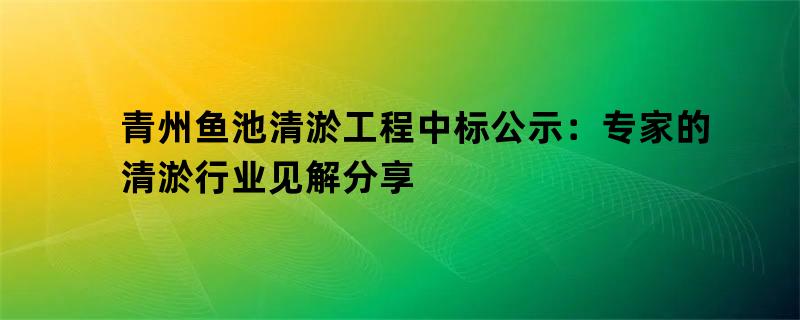 青州鱼池清淤工程中标公示:专家的清淤行业见解分享