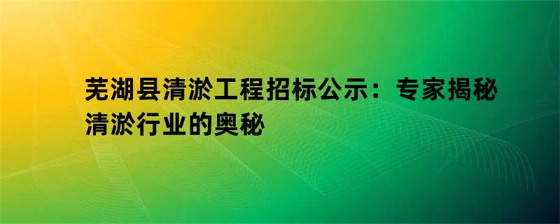 芜湖县清淤工程招标公示:专家揭秘清淤行业的奥秘,引起了不少人的兴趣。清淤行业虽然一直以来都被认为是一个比较 "低端" 的行业,但是随着技术的进步和市场的发展,这一行业也正变得越来越重要。本文将从多个角度对清淤工作展开分析,帮助读者了解这一行业的奥秘。
