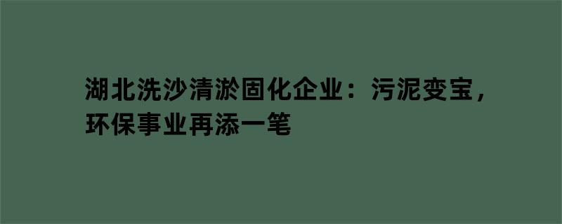 湖北洗沙清淤固化企业:污泥变宝,环保事业再添一笔