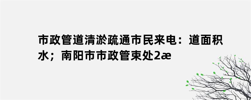 市政管道清淤疏通市民来电:道面积水;南阳市市政管束处2放坡开挖施工方案0分钟疏通