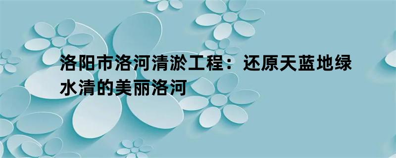 洛阳市洛河清淤工程:还原天蓝地绿水清的美丽洛河